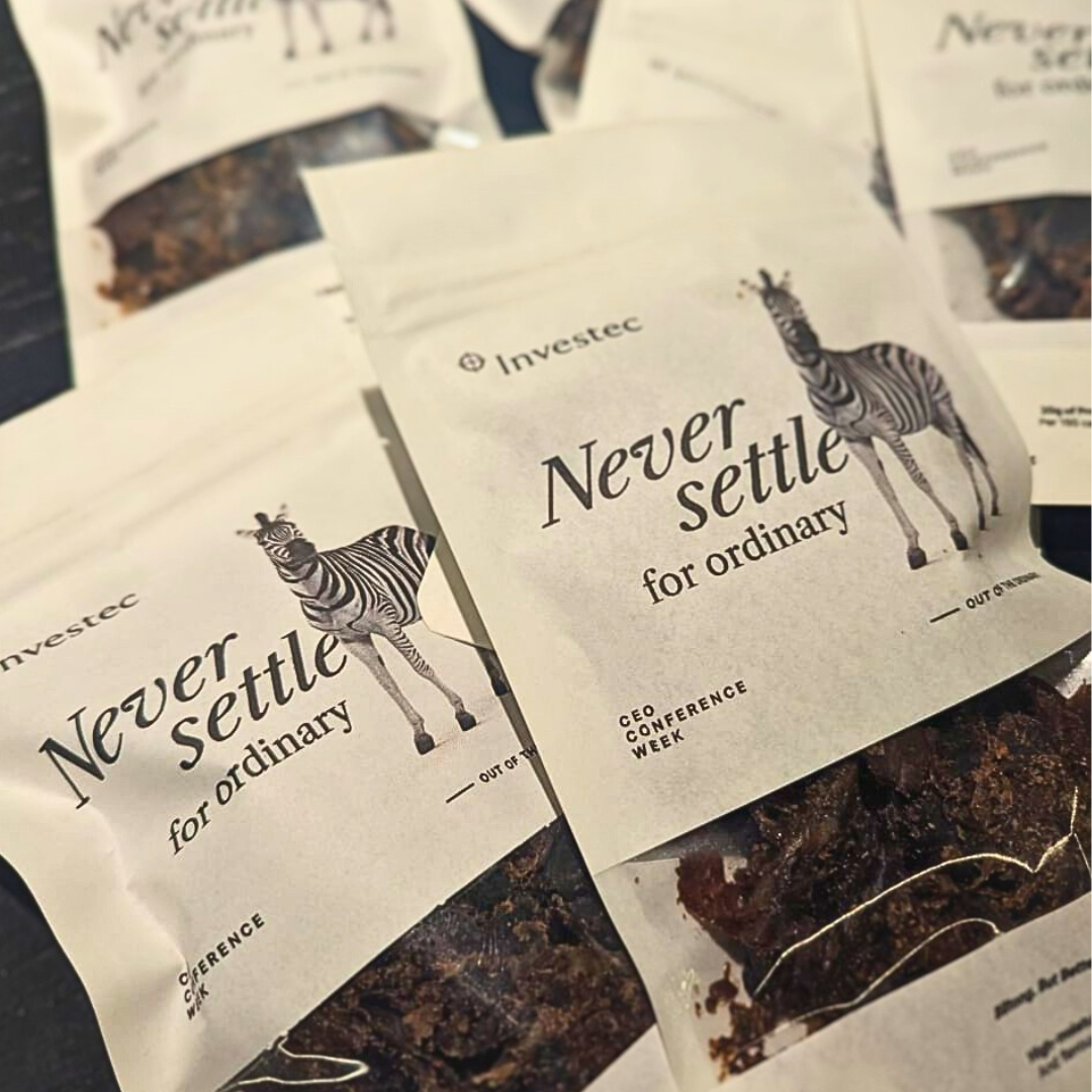 Whether you are hosting a bunch of South Africans or you would like to treat your attendees to a healthy snack to munch on at a company event - Battersea Biltong offer bespoke packaging for corporate events.
